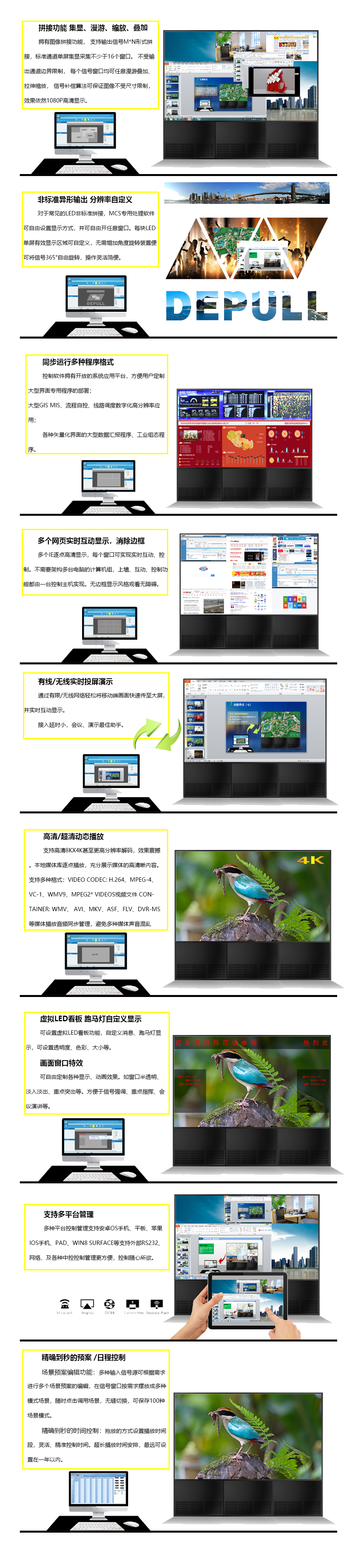 專為小型控制室、展示廳設(shè)計(jì) 支持4個全高清視頻輸出接口及8個DVI輸入接口
