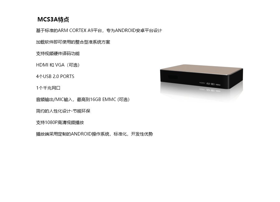 基于標(biāo)準(zhǔn)的ARM Cortex A9平臺 專為Android安卓平臺設(shè)計